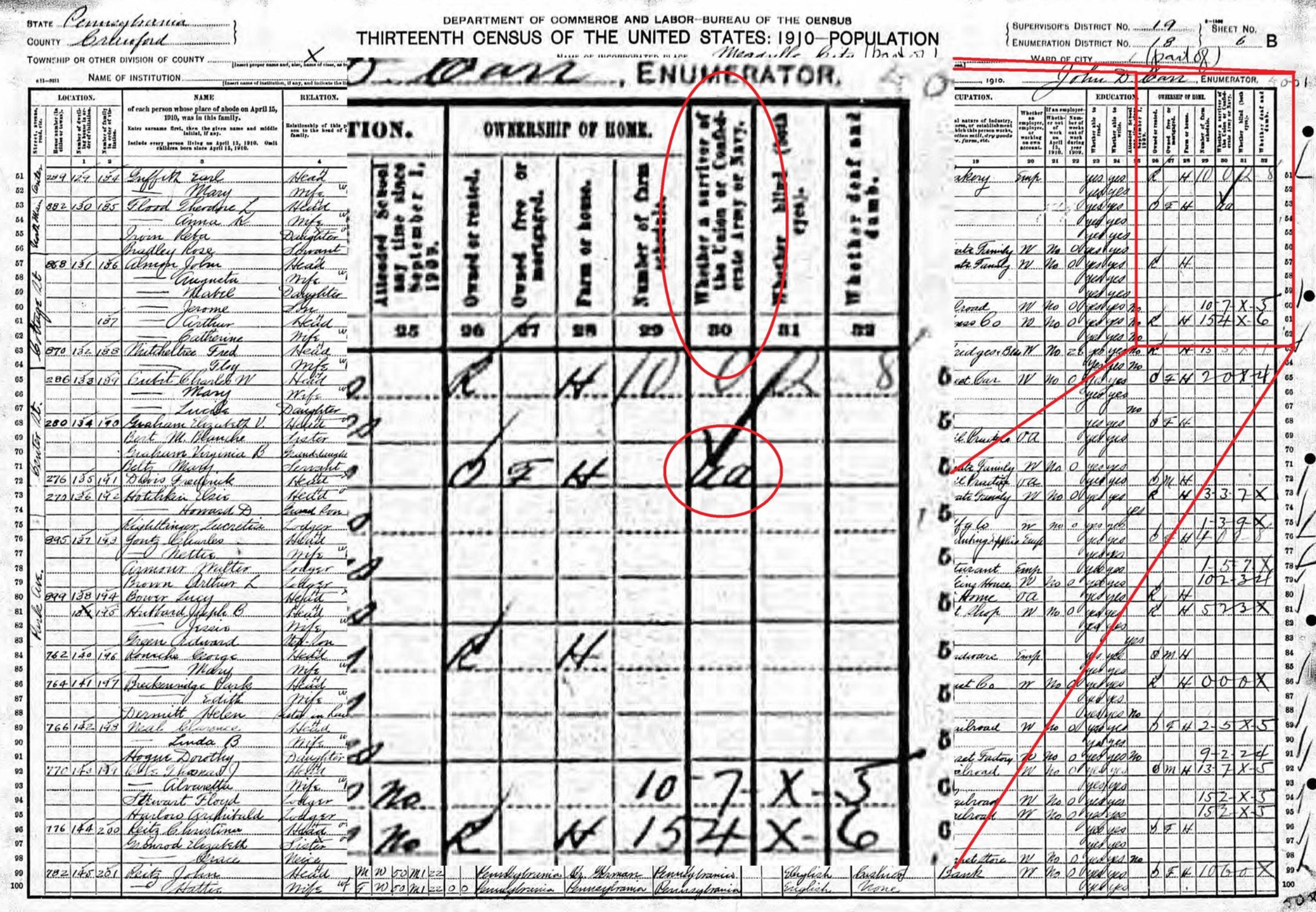 Did you know that the 1910 census asked if the person was a veteran of the Civil War?